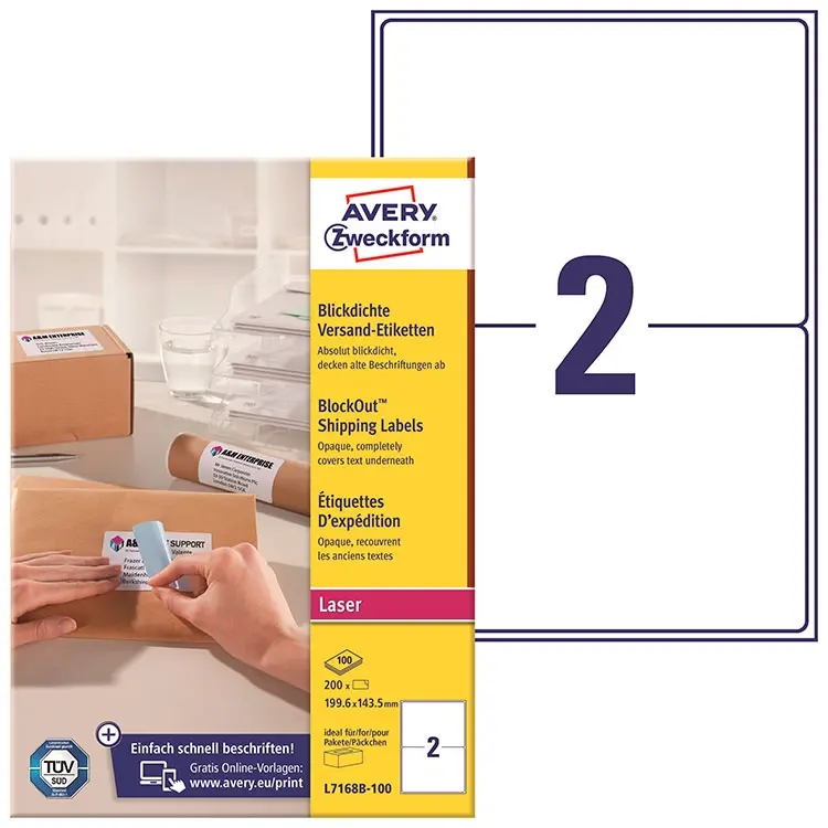 Avery L7168B A4 BlockOut Etiket 199,6 x 143,5 mm (2 pr. ark) Hvid 100 ark