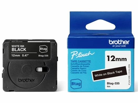 Brother BTAG-335 Teksttape 12 mm Hvid på Sort 4 m