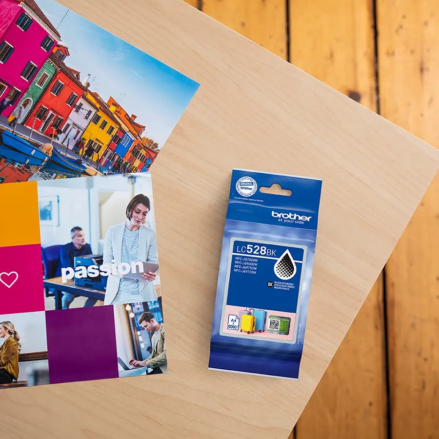 Original Brother Super High Yield Blækpatron med typebetegnelse LC-528BK og Brother varenummer LC528BK. Passer bl.a. til Brother MFC-J6760DW og MFC-J6960DW. Brug af den originale Brother LC528-blækpatron beskytter din printergaranti.