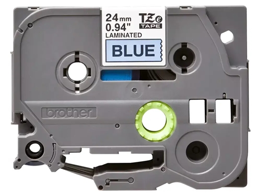 Brother TZe standard tape bruges til fremstilling af selvklæbende laminerede labels og er modstandsdygtige overfor vand, slid, kemikalier, sollys og ekstreme temperaturer. TZe551 er 24 mm bred og med sort tekst på blå tape