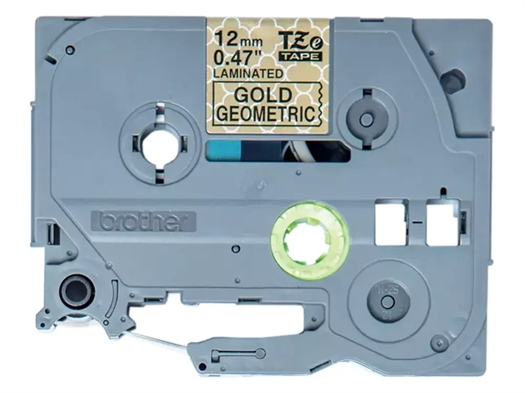 Brother TZe standard tape bruges til fremstilling af selvklæbende laminerede labels og er modstandsdygtige overfor vand, slid, kemikalier, sollys og ekstreme temperaturer. TZeMPGG31 er 12 mm bred og med sort tekst på guldmønstret tape.