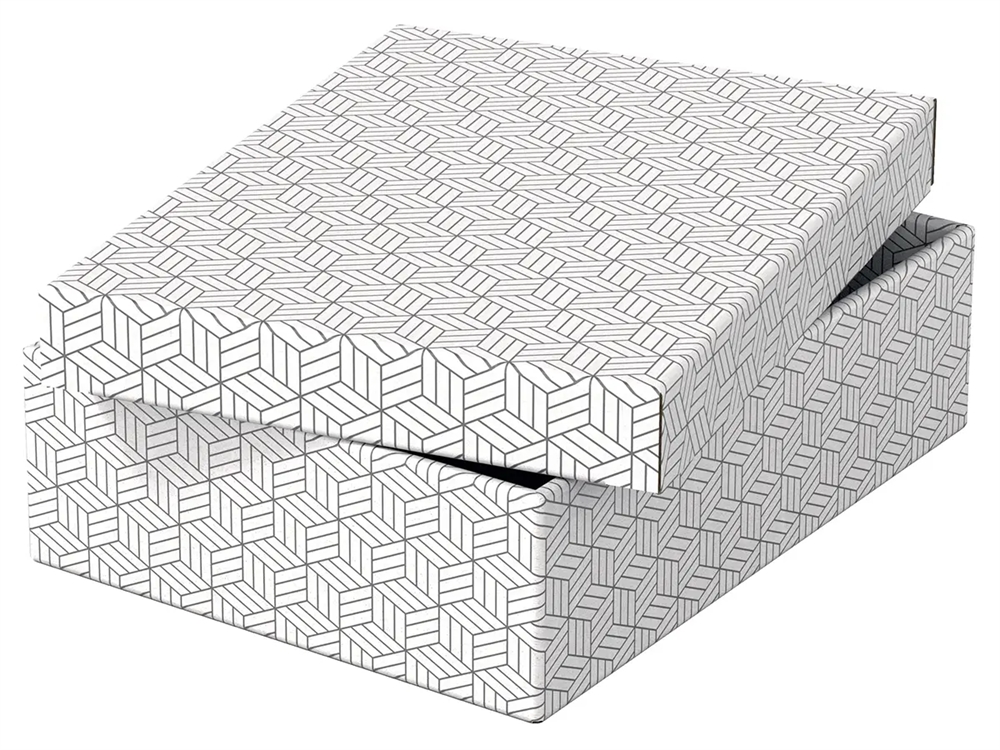 Stilfulde og moderne opbevaringsbokse i pap med aftageligt låg. Ideel til opbevaring eller indpakning af gave. Fremstillet af stærkt, 100% genbrugt og 100% genanvendeligt pap, der er FSC-certificeret. Dimensioner (B x H x D mm): 265 x 100 x 360