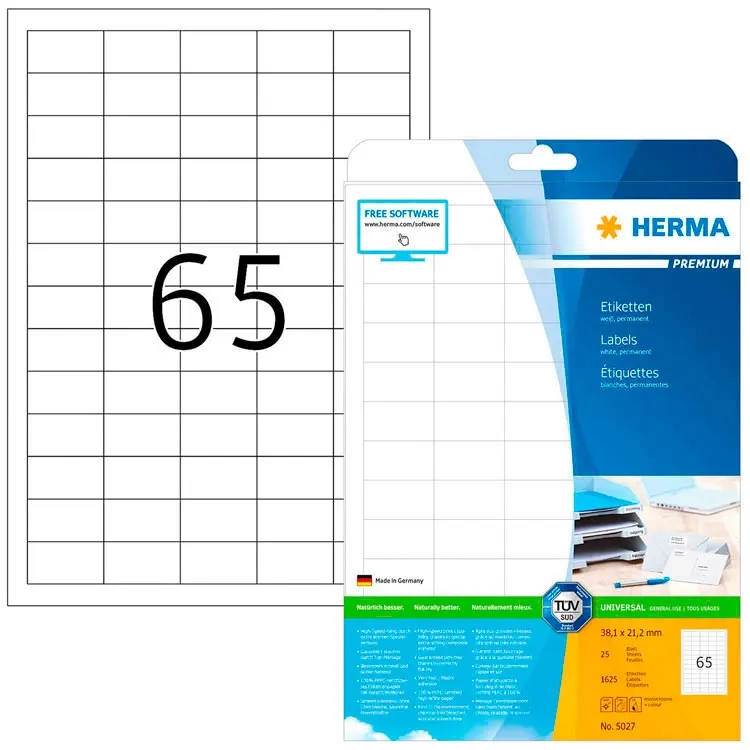 Herma 5027 Premium Etiket 38,1 x 21,2 mm (65 pr. ark) HVID 25 ark