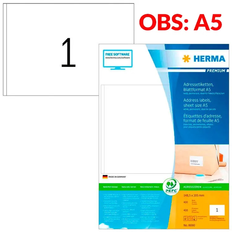 Herma 8690 Premium Etiket 148,0 x 205,0 mm (1 pr. ark - OBS! A5-ark) Hvid 25 ark