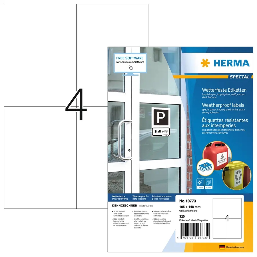 Herma Vejrbestandig Printer-Etiket 105,0 x 148,0 mm (4 pr. ark) Hvid 80 ark