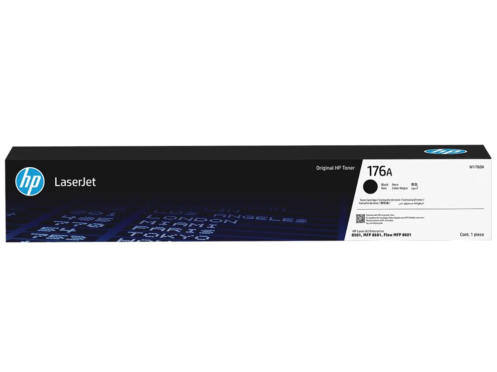 Original HP LaserJet Printerpatron med typebetegnelse No. 176A og HP varenummer W1760A. Passer bl.a. til HP LaserJet Enterprise 8501x, HP LaserJet Enterprise Flow MFP 8601z, HP LaserJet Enterprise 8501dn og HP LaserJet Enterprise MFP 8601dn
