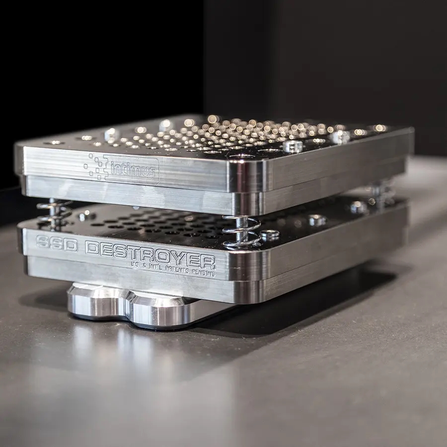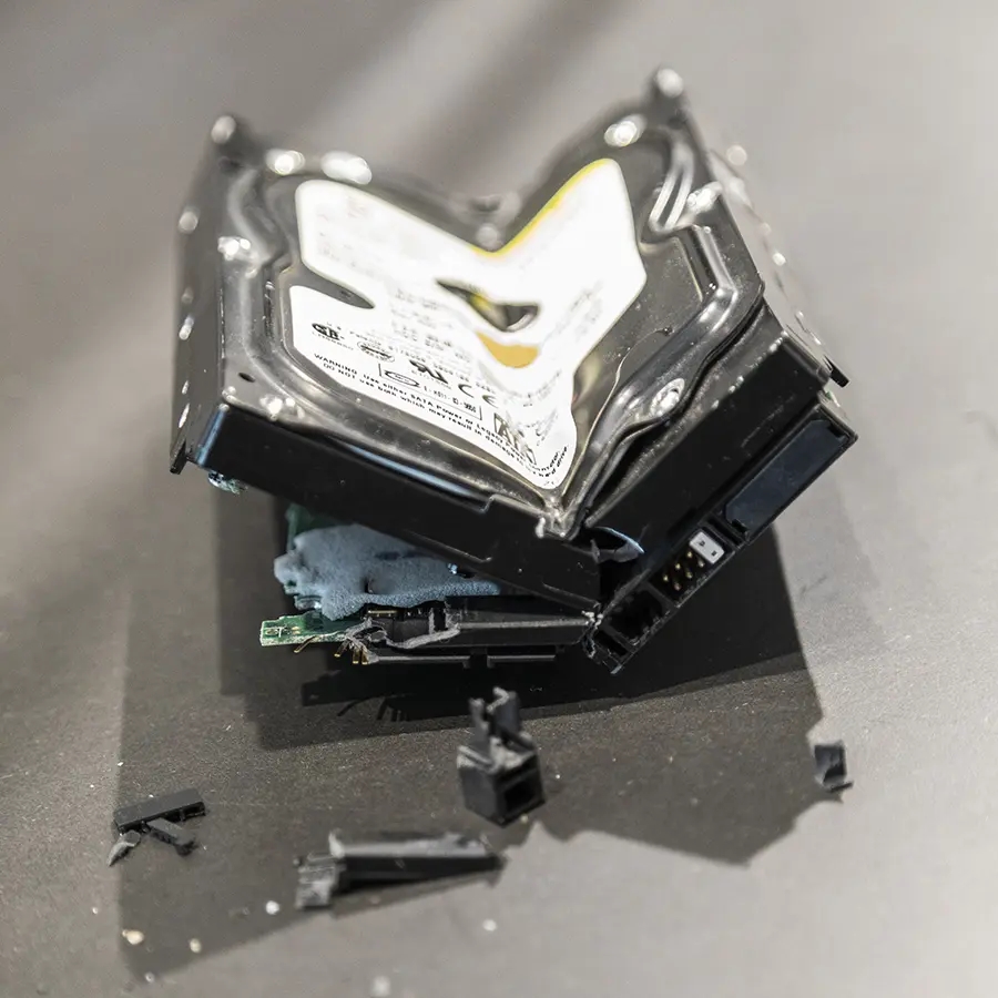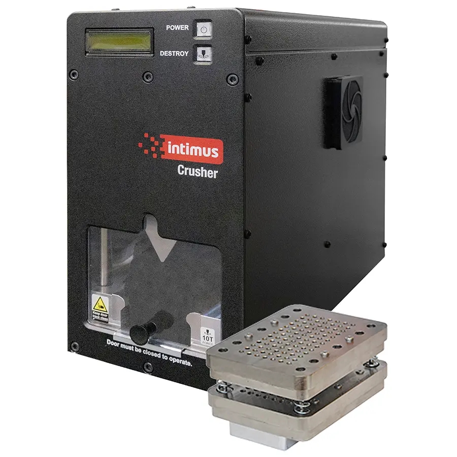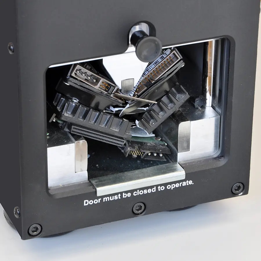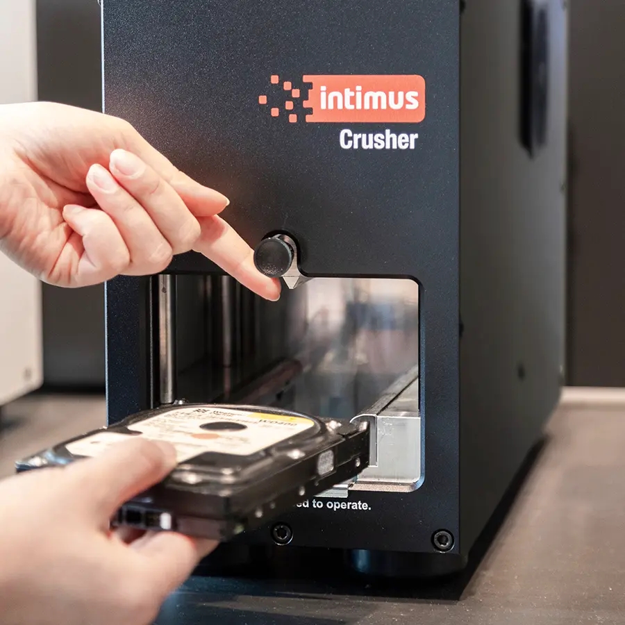 Ønsker du yderligere sikkerhed i forhold til elektronisk makuleing af harddisk (degaussing), anbefaler vi en fysisk ødelæggelse af harddisken – og husk: en hammer er ikke nok. Intimus 360 Crusher destruerer en hard disk på mindre end 20 sekunder