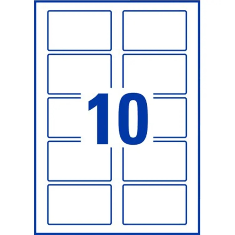A4-ark med udstansede rektangulære etiketter i ekstra kraftig high gloss papirkvalitet (laserprint) og med permanent lim. I alt 500 etiketter pr. æske. Til denne vare tilbyder vi skabelon til Microsoft Word.
