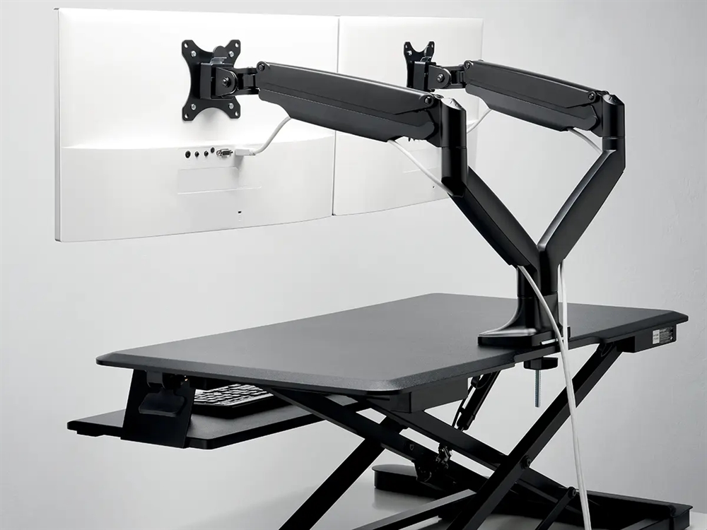 Kensington SmartFit One-Touch dual monitorarm gør det nemt at finde den rette skærmhøjde. Den kraftige konstruktion garanterer stabilitet i hver position, mens dens gasfjedermonteringsbeslag gør det nemt at justere skærmene.