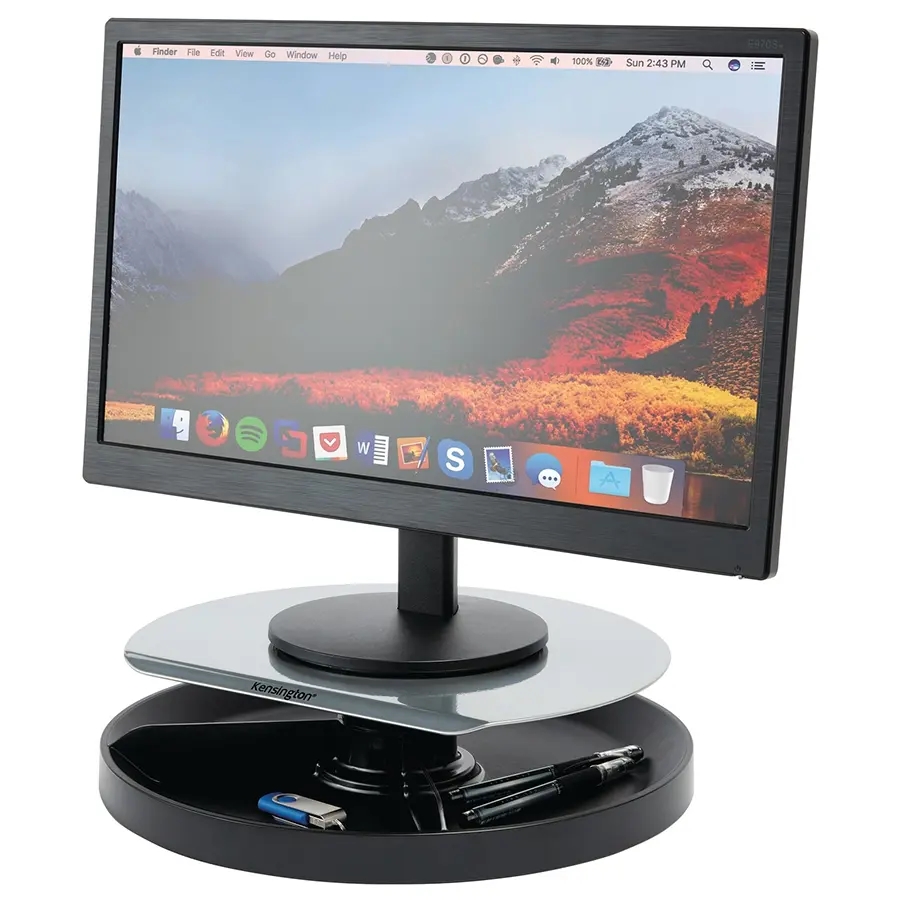 Monitor stand med 360 graders drejefunktion samt højdejustering. Passer til de fleste skærme op til 18 kg. Kensington’s patenterede SmartFit system hjælper dig med at justere din skærm i korrekt højde.