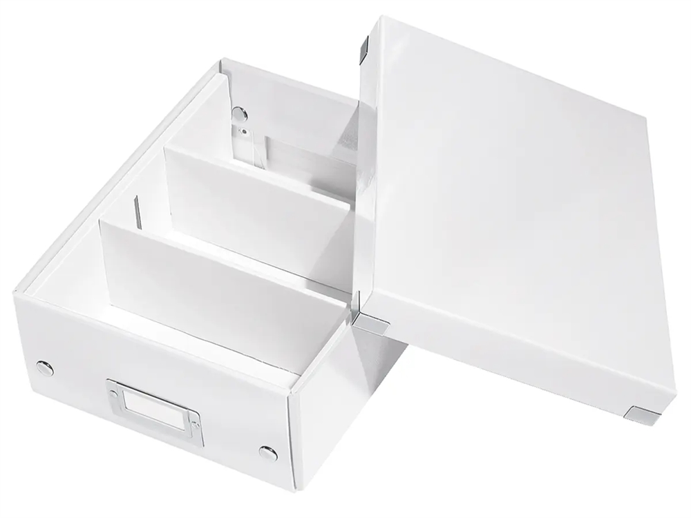 Organiseringsboks med 2-3 fleksible rum. Kan foldes sammen til pladsbesparende opbevaring, når den ikke er i brug. Etiketholder til indeksering. Fremstillet af stærkt, førsteklasses genbrugspap. Dimensioner (B x H x D mm): 220 x 100 x 282
