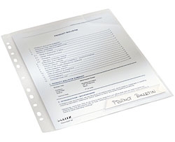 Fleksibel omslag og lomme med unik fold-ud hulkant. Dokumenter opbevares sikkert med hjørne fiksering på forsiden. Attraktivt præget design på PP folien.