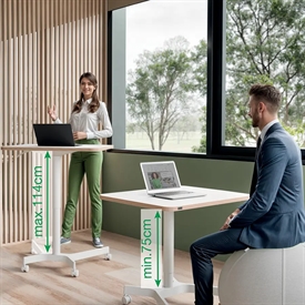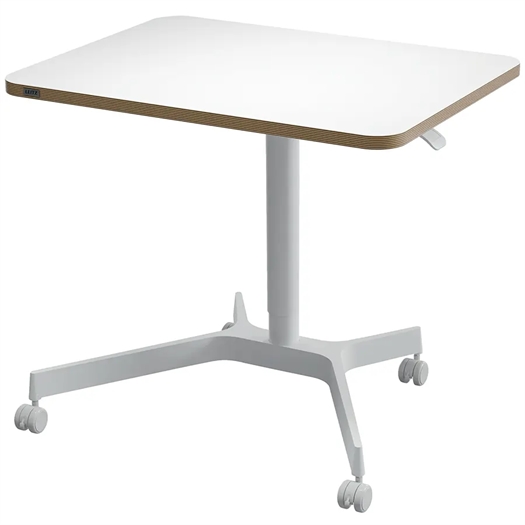 Mobilt hæve-/sænkebord med manuel pneumatisk hæve-/sænkefunktion. Plads til en skærm, en bærbar computer, tastatur og mus og med 4 låsbare hjul, så du nemt og hurtigt kan flytte bordet.