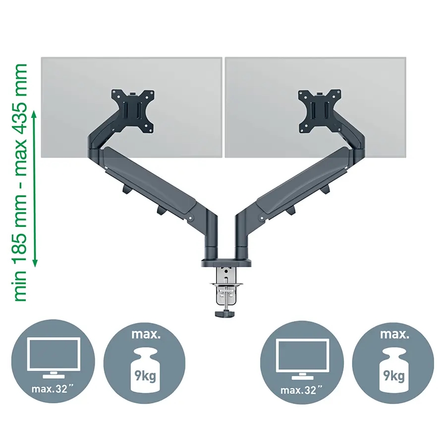 Leitz Ergo Space Saving Dual Monitorarm 2-9 kg Mørk Grå