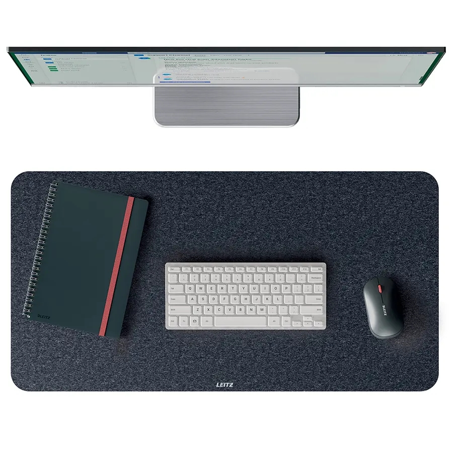 Skab et sted, hvor du føler dig godt tilpas med Leitz large filt skriveunderlag. Det er en elegant skrivebordsbeskytter med en naturlig finish, behagelig blød overflade og afrundede hjørner.