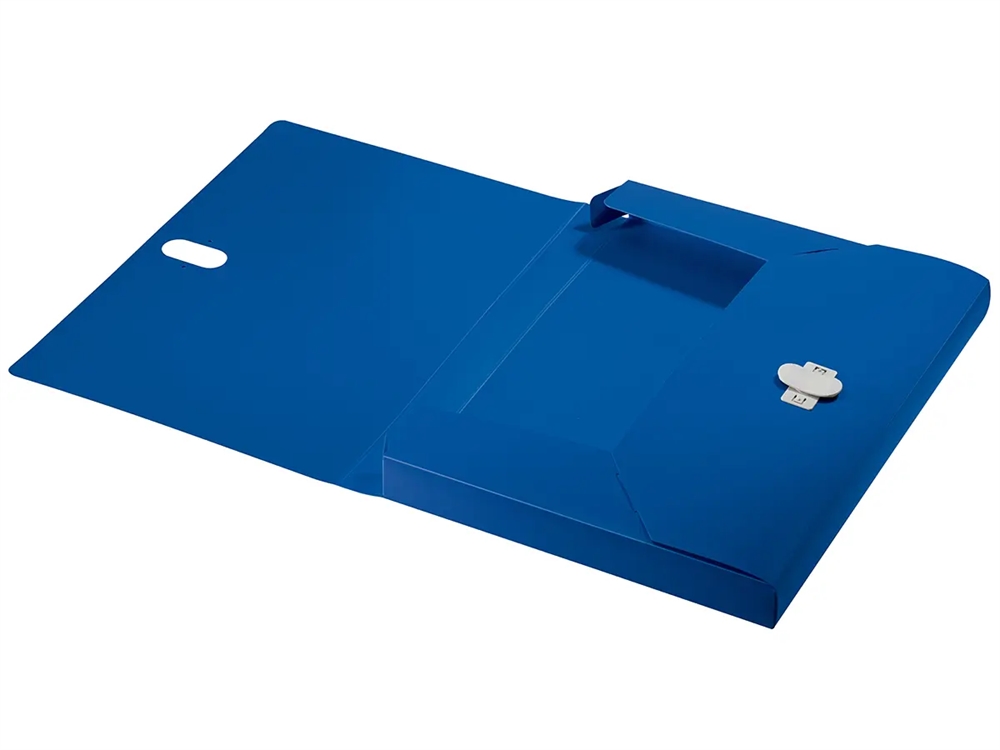 Iøjnefaldende, højkvalitets PP arkivæske med høj kapacitet til daglig brug i skole, kontor og hjem. Lavet af 80% recirkuleret plast, 100% recirkulerbar og med Blå Engel miljøcertificering.