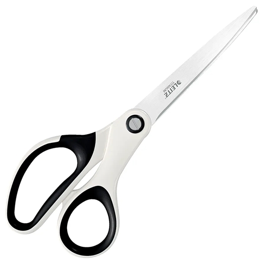 Premium titanium dækket, rustfri stål kontorsaks. Med komfortabelt ergonomisk greb i slående to-farve effekt. De holdbære titanium dækkede blade forbliver skarpe meget længere end standard blade.