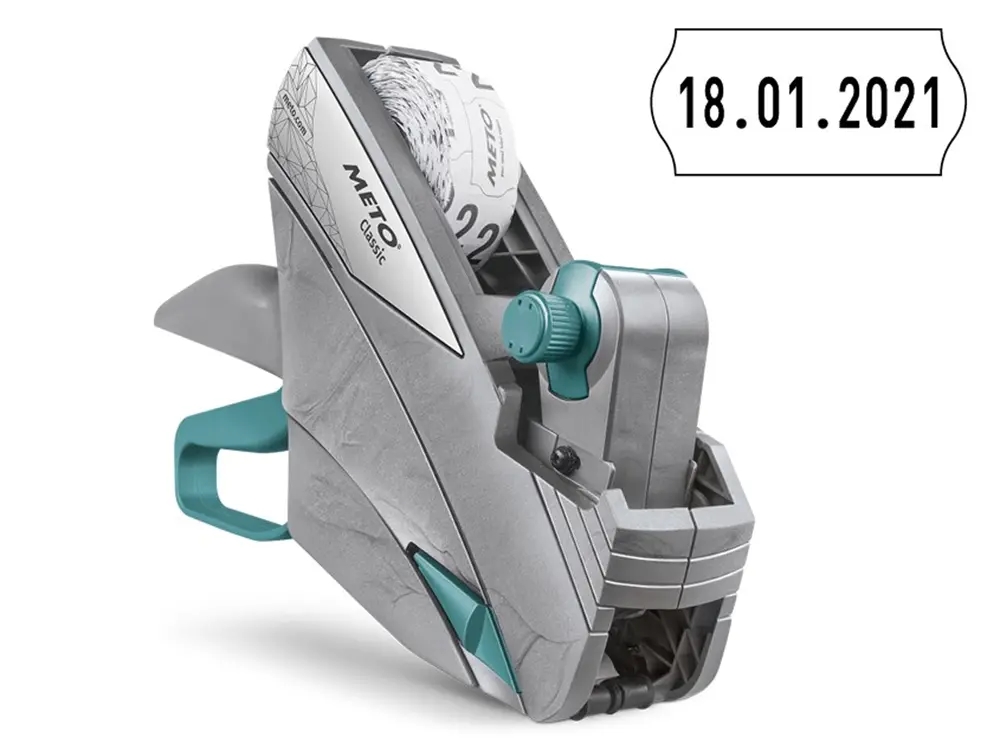 Den 1-linjes håndholdte prispistol Basic S 826 fra METO er en klassisk prispistol, som har lang levetid og høj driftssikkerhed. Den skriver max 8 tegn på 26 x 16 mm etiketter. Indeholder flere valutasymboler – bl.a Kr. og Euro.
