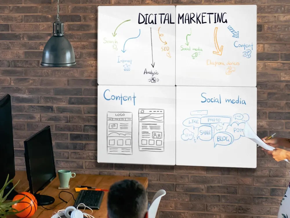 Stilfuld magnetisk whiteboardtavle uden ramme. Monteres med magnetisk klik-beslag, så tavlen nemt kan fjernes og monteres igen. Det modulære design giver dig mulighed for at montere flere tavler ved siden af hinanden.