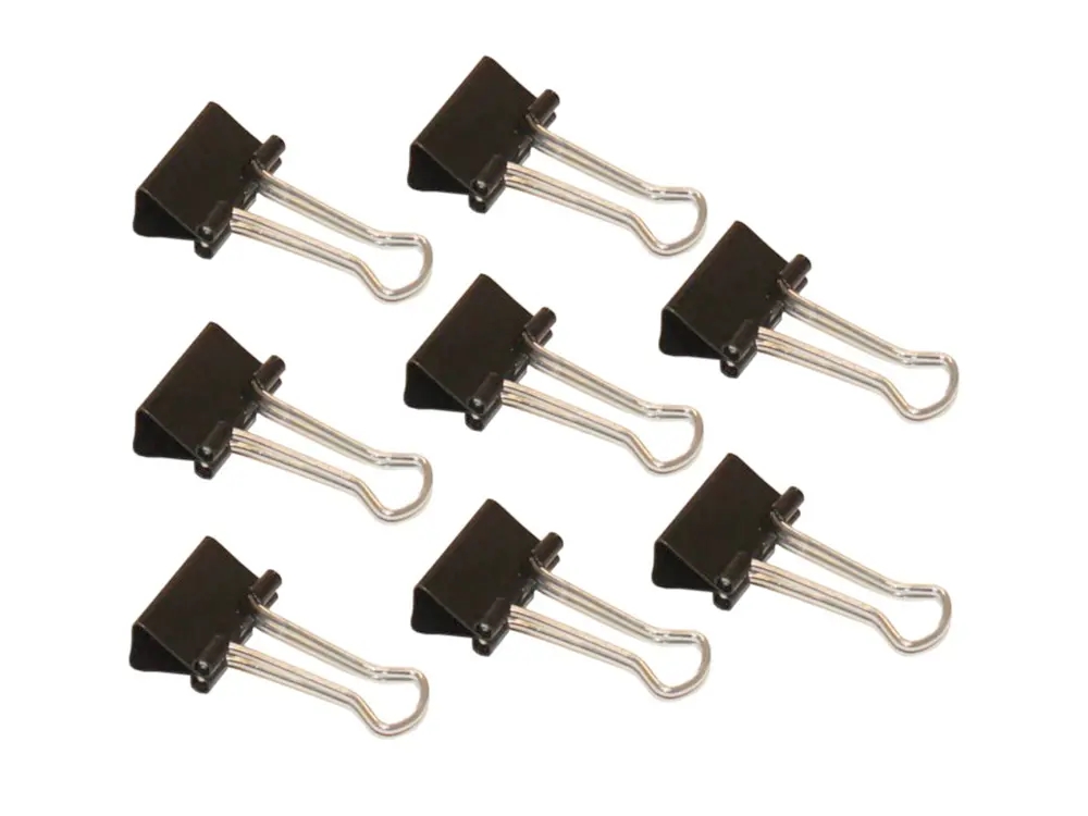 Foldback papirklemme i metal. 19 mm bred og med 175 mm åbning. Smart papirklemme, hvor håndtagene kan foldes frem og tilbage, så papirklemmen også kan bruges til ophængning i krog eller lignende