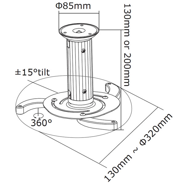 Med dette projektorbeslag kan du nemt indstille din projektor til optimal position. Beslaget kan justeres fra 8-15 cm i højden og passer til praktisk taget enhver projektor, som vejer mindre en 15 kg.