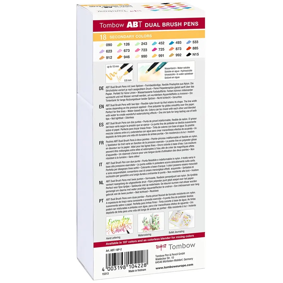 Tombow ABT Dual Brush Secondary Colours 18 stk