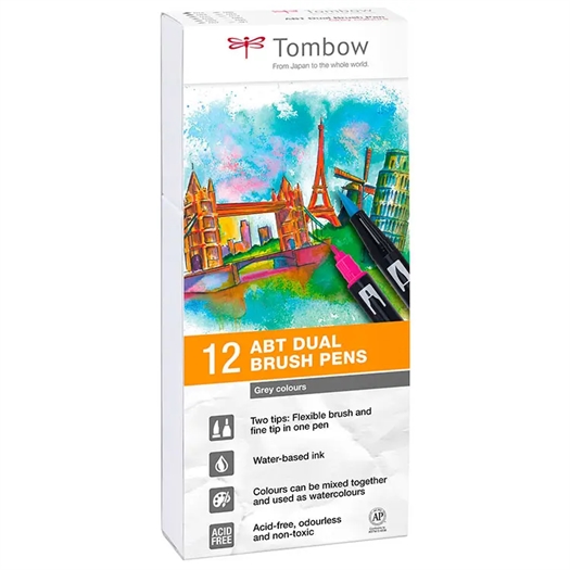 Tombow ABT Dual Brush Grey Colours 12 stk